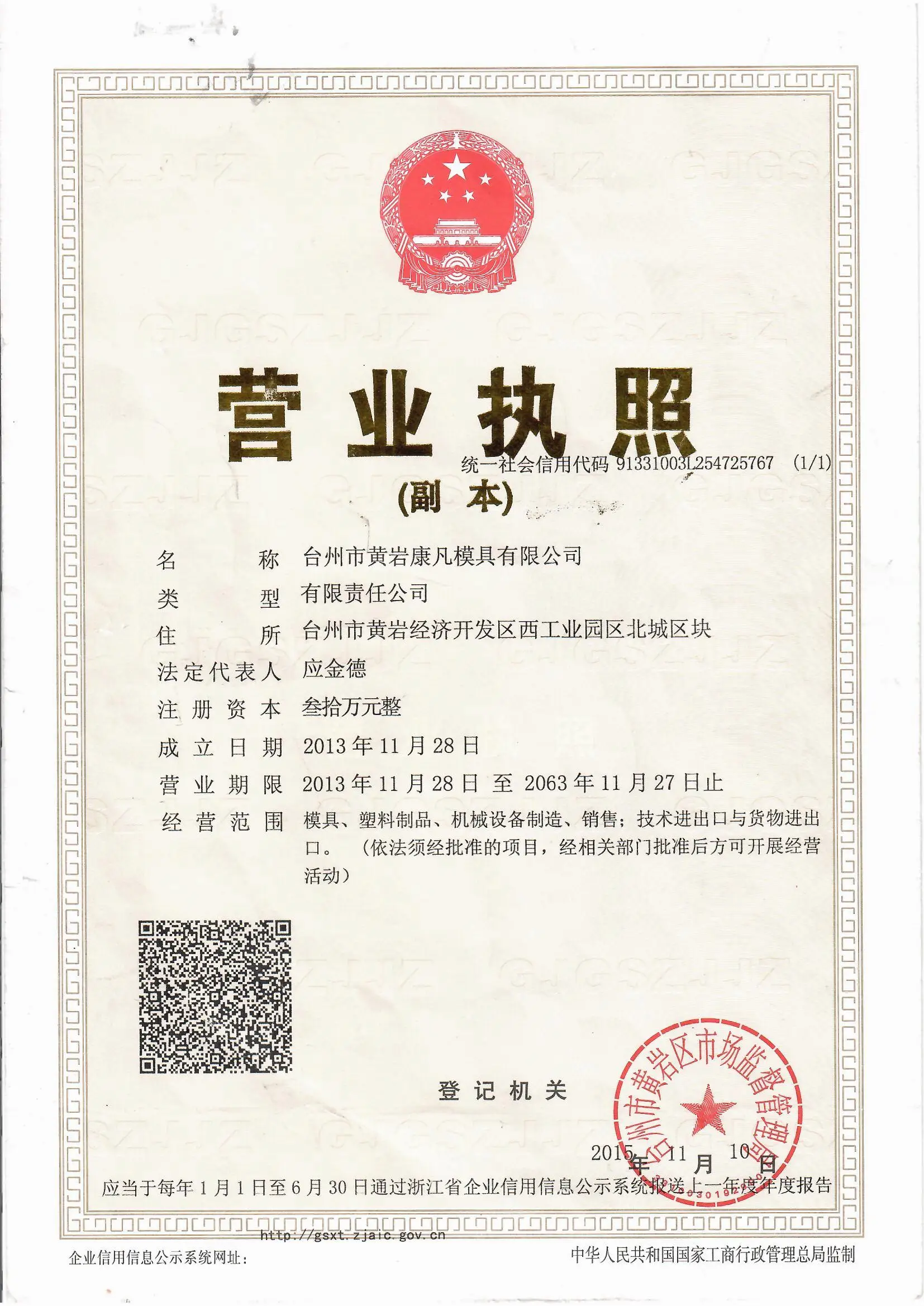 Registered address : Beicheng Block, West Industrial Zone, Economic Development Zone Taizhou Zhejiang China
